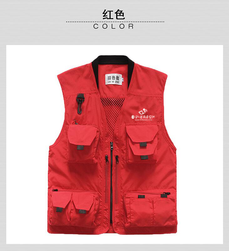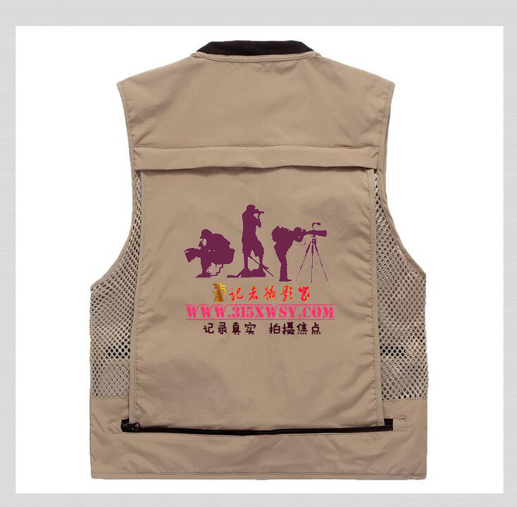 款式2 315記者攝影家訂制的,攝影馬甲LOGO印制速干多口袋戶外春秋夏季透氣面料塔絲隆馬甲,每件130元(熱轉(zhuǎn)印圖文).