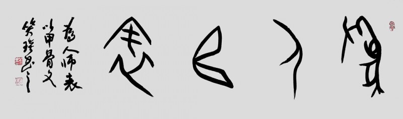 下面我們通過欣賞笑琰的一幅甲骨文書法,來感受他所達(dá)到的高度。