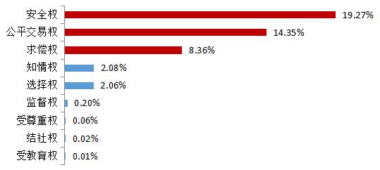 (一)消費者安全權(quán)、公平交易權(quán)、求償權(quán)成經(jīng)營者侵權(quán)高發(fā)區(qū)