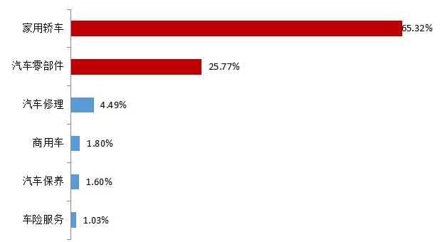 2017年所有汽車產(chǎn)品投訴中,65.32%的投訴對象是家用轎車,占比最大,其次是汽車零部件,占比25.77%。
