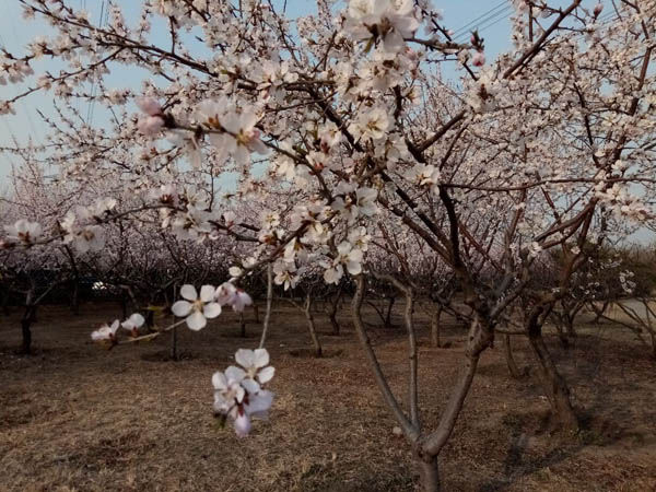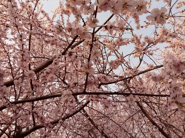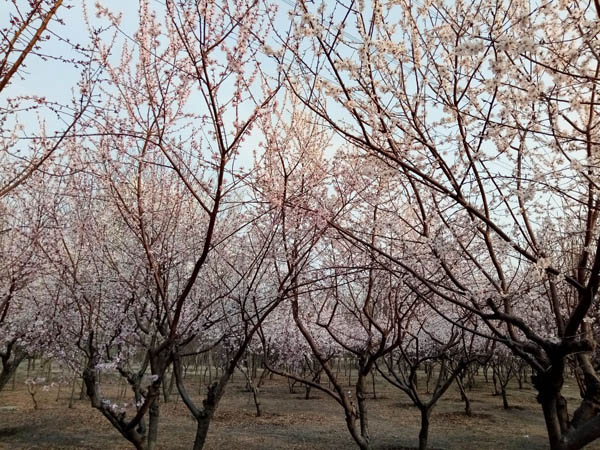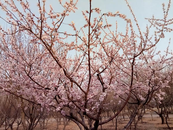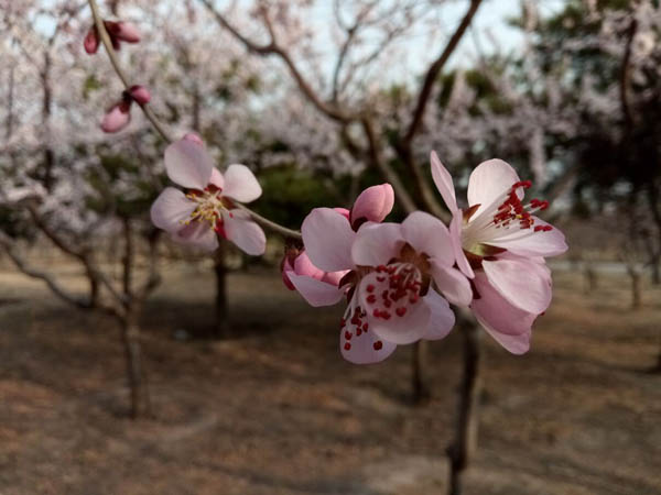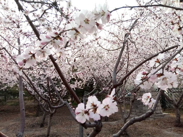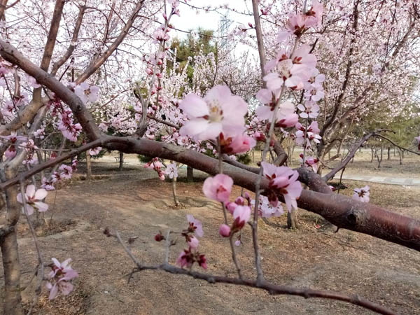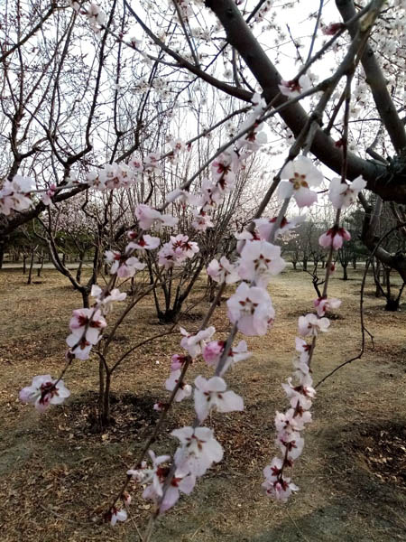 海棠公園的桃樹杏樹全開了,一夜之間花事如此盛大,讓人有點措手不及……