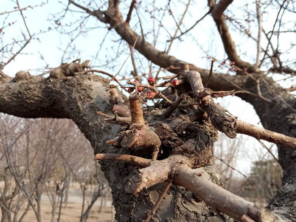 這是一棵杏樹吧?在海棠公園好像它是最大的一棵,開花也最早。
