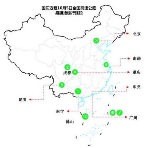 中新網(wǎng)客戶端9月27日電(記者 程春雨) 從交通部獲悉,2018年國(guó)慶期間(10月1日0時(shí)起至10月7日24時(shí)止),全國(guó)高速公路免費(fèi)。免費(fèi)車輛為七座及以下小型客車以及允許在普通收費(fèi)公路行駛的摩托車。據(jù)交通部預(yù)測(cè),國(guó)慶假期,珠三角地區(qū)擁堵程度最高,長(zhǎng)三角次之,京津冀與成渝地區(qū)高速公路通行擁堵程度也較大。具體哪些路段易堵車,請(qǐng)戳圖。