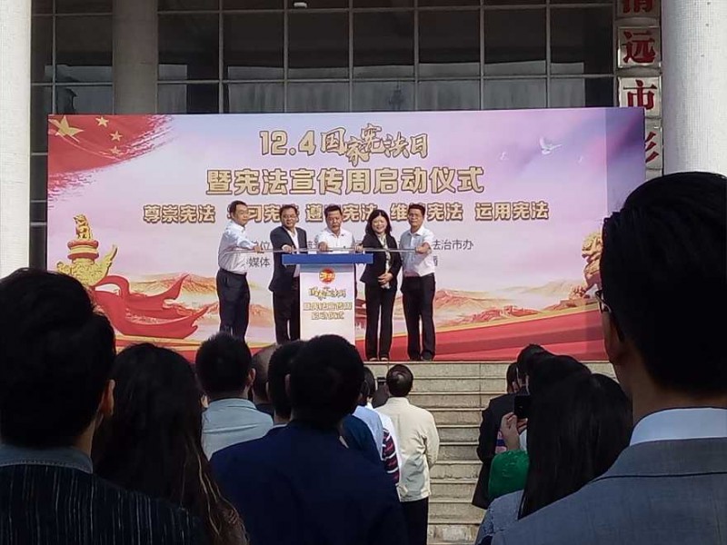 清遠市委常委、秘書長、政法委書記陳煥雄就首個“憲法宣傳周”活動致詞,弘揚了憲法精神,維護憲法權威,推動全社會‘尊崇憲法 學習憲法 遵守憲法 維護憲法 運用憲法’。