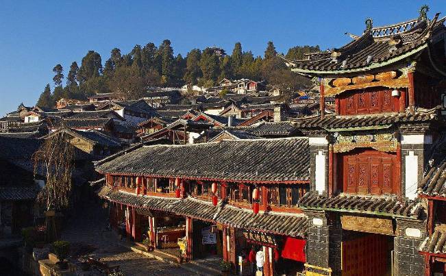 麗江古城也叫作大研古鎮(zhèn),明代旅行家徐霞客在《滇游日記》中描述當(dāng)時麗江城“民房群落,瓦屋櫛比”。