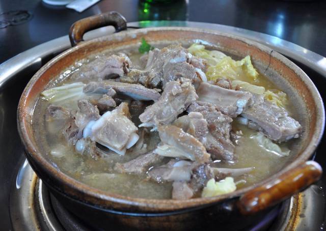 它是納西名菜“三疊水”的第三疊——“熱烈疊”中的一道主菜。三疊水,等同于納西人的滿漢全席,只有宴請最尊貴的客人才上此菜。直到今天,很多麗江人都會帶自己的親朋好友去吃上一頓臘排骨火鍋,熱騰騰的火鍋加上幾瓶冰爽的啤酒,好像什么事情都能解決。