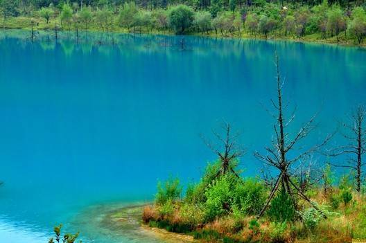 而白水河這個名字是因?yàn)楹椎哪喟褪前咨模掠陼r水會變成白色,所以又叫白水河。藍(lán)月谷中的河水在流淌過程中因受山體阻擋,形成了四個較大的水面,人稱“玉液”湖、“鏡潭”湖、“藍(lán)月”湖和“聽濤”湖。