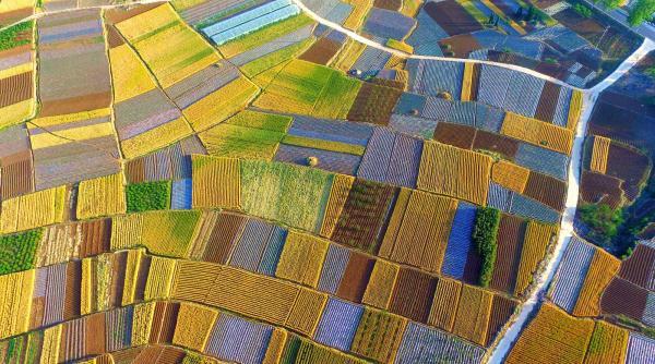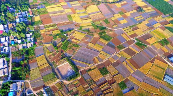 初夏麥熟時節(jié),山東省臨沂市費縣新莊鎮(zhèn)田間色彩斑斕,構成一幅色彩斑斕的夏日畫卷。