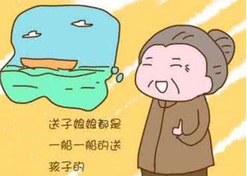 民間有個有趣的說法:相傳每個孩子來到某個家庭,都是天庭神仙指派的,負責接送的便是送子娘娘。送子娘娘在送孩子的過程中,主要的交通工具就是船。但畢竟船的容納數量有限,往往不可能一次性地將孩子全部送達。而且在送的過程中,會有不同的分工和安排。通常每船會固定接送一船的男孩然后會配上一兩個女孩來斟茶;一船的女孩配上一兩個男孩來做艄公。這樣男孩女孩的交叉分配,確保了路途中的安全,而且也能夠給送子娘娘解解悶。