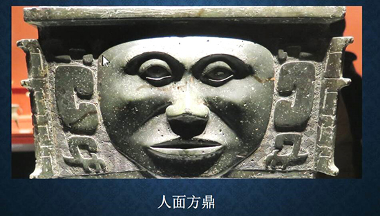 在李零看來,中國的紋飾,早期出土器物上有神面紋或者叫人面紋,比如良渚玉器上最繁復的花紋,既是大字人形,又是大人臉;石家河玉器和龍山玉器里神面紋比較猙獰;人臉比較寫實的是湖南出土的人面方鼎,但目前是孤例。最近在清華大學展出的石峁遺址出土文物,其中的神面紋石刻也很有意思。這種人臉形象,可到了商代和西周的青銅器上就比較罕見,戰(zhàn)國青銅器上的紋飾又出現(xiàn)人,但不是表現(xiàn)臉。這種現(xiàn)象頗讓人費解,有學者認為就是個裝飾,沒有什么意義,也有學者如張光直先生則主張“薩滿說”,認為這種紋飾是用來通神的。
