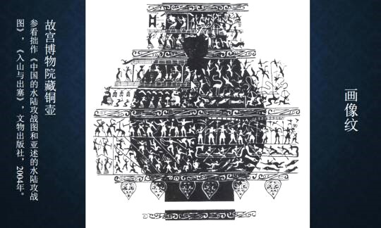 從動物紋、幾何紋到畫像紋,商周青銅器上的三大類紋飾,第一類取象于動物,偏于寫實;第二類是動物的變形,偏于寫意,富于裝飾性;第三類表現(xiàn)人和人類生活,趨向細密、繁縟。李零總結說,“藝術的演變也經常是一樣,一會兒顯得是大氣蓬勃,一會兒顯得非常細密繁縟,在歷史上可能會交替出現(xiàn),我們今天只是討論了它較早的一段,后續(xù)為我們研究更晚期的紋飾提供一種探討。”