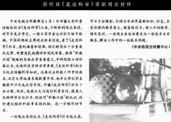 中國(guó)作為為數(shù)不多將愛科學(xué)寫入憲法的國(guó)家,提出科學(xué)技術(shù)是第一生產(chǎn)力,要解放生產(chǎn)力發(fā)展生產(chǎn)力,因此對(duì)科學(xué)格外重視。一方面,需要科學(xué)破除迷信,穩(wěn)定社會(huì);另一方面,需要科學(xué)推動(dòng)生產(chǎn)力,圍繞經(jīng)濟(jì)建設(shè)為中心。《走近科學(xué)》就是在這樣的大背景中誕生,1998年6月1日開播,1999年10月創(chuàng)辦同名科普雜志,主要精選電視欄目?jī)?nèi)容刊登,由科學(xué)出版社每月發(fā)行。