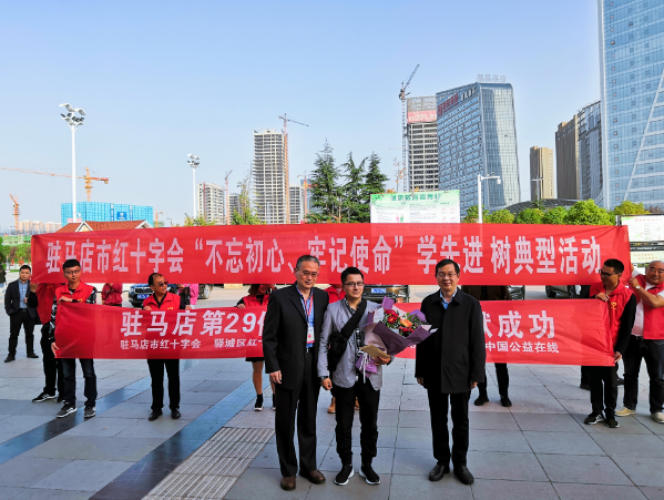 “熱烈歡迎王磊成功捐獻(xiàn)造血干細(xì)胞歸來(lái)”“駐馬店第29例造血干細(xì)胞捐獻(xiàn)成功”……見(jiàn)到王磊,由市紅十字會(huì)和驛城區(qū)紅十字會(huì)工作人員、市紅十字造血干細(xì)胞服務(wù)隊(duì)、天方藥業(yè)原料分廠機(jī)關(guān)黨支部、中國(guó)公益在線駐馬店公益記者站、市紅十字山地救援服務(wù)隊(duì)等志愿者組成的接站隊(duì)伍,為他獻(xiàn)上了鮮花和掌聲,以及大家對(duì)歸家英雄深深的敬意。