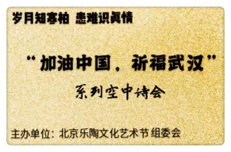 在北京樂陶文化藝術節(jié)組委會主任孫月龍的倡導部署下,在段書香、黃文秀、戚莉三位副總策劃的積極組織下,2月2日上午,北京樂陶文化藝術節(jié)系列空中詩會正式拉開了帷幕,在這個空中舞臺上,在這五十六天的時間里已經(jīng)有近五百名詩友傾情朗誦,用真誠的心和最美的聲音傳遞我們祈福祖國的心聲,這些發(fā)自肺腑的聲音從河北、從陜西、從千里之外的新疆、從英雄的湖北、從海外華人華僑匯聚到北京,匯聚到這里!用詩歌的力量,用最美的聲音,用我們的愛心為武漢加油,為中國加油,為世界祈福!