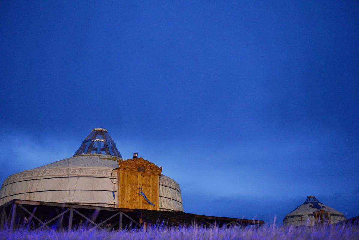 晚飯后,面朝呼和諾爾湖,天空是深邃的藍(lán)。夜晚的蒙古包,靜謐又祥和。可以好好享受草原的夜色,早上日出后又是充滿熱情的人們,向你獻(xiàn)上最好的禮遇。