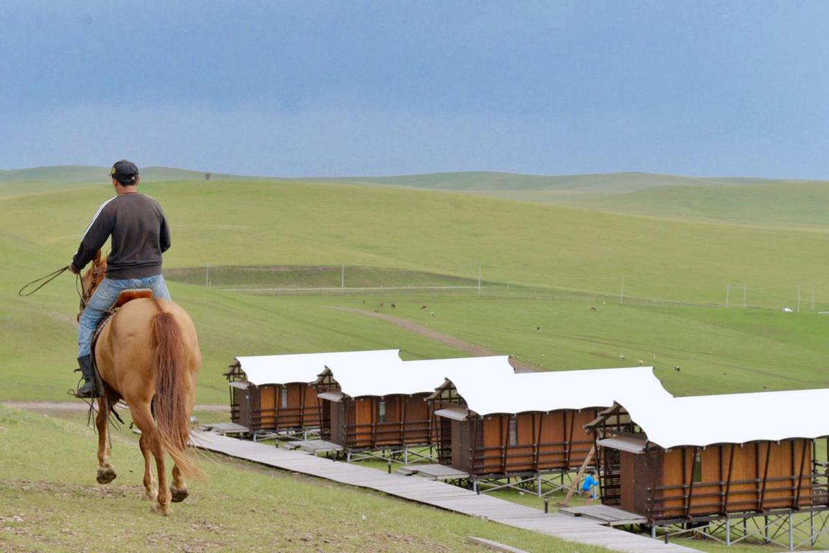 牧民巴特爾告訴記者,在陳巴爾虎旗鄂溫克蘇木阿爾山嘎查牧云山頂,共有17間房,10間蒙古包和7間木屋,360度觀景的玻璃餐廳。他的家就在10公里外的另一座山腳下,開(kāi)車過(guò)來(lái)就十幾分鐘。來(lái)這邊的游客都會(huì)提前預(yù)定好住宿,包下一個(gè)蒙古包可以夠一家人在里面休息了。聽(tīng)著馬頭琴聲、民族歌曲,再來(lái)一碗熱乎乎的奶茶和一塊手工甜點(diǎn),一天也可以這么過(guò)。