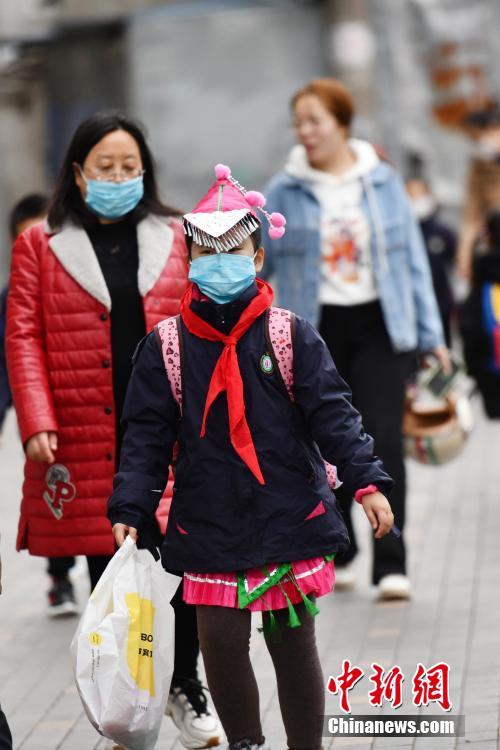 3月1日,成都市華陽中學附屬小學一學生走在上學路上。當日,成都各中小學迎來開學。中新社記者 張浪 攝
