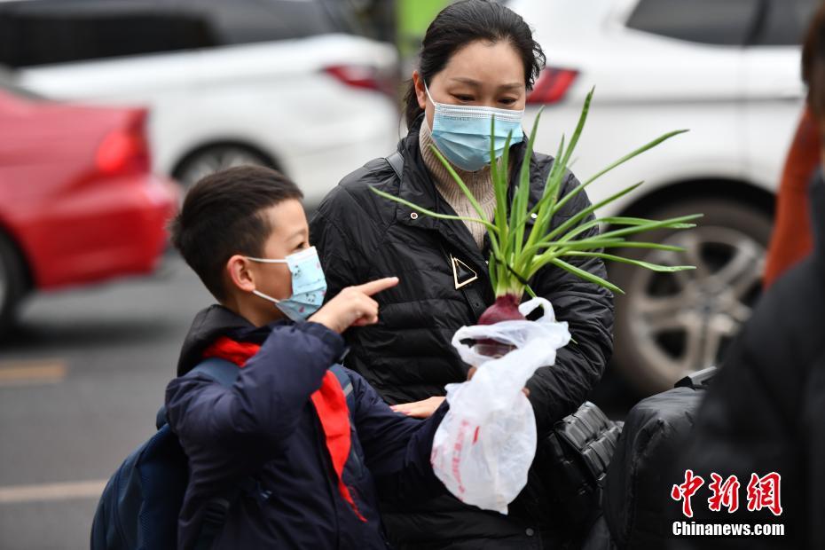 3月1日,成都市華陽中學附屬小學一學生帶著綠植進入學校。當日,成都各中小學迎來開學。中新社記者 張浪 攝