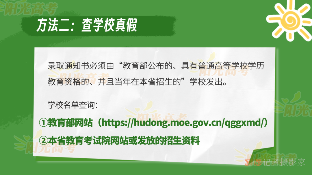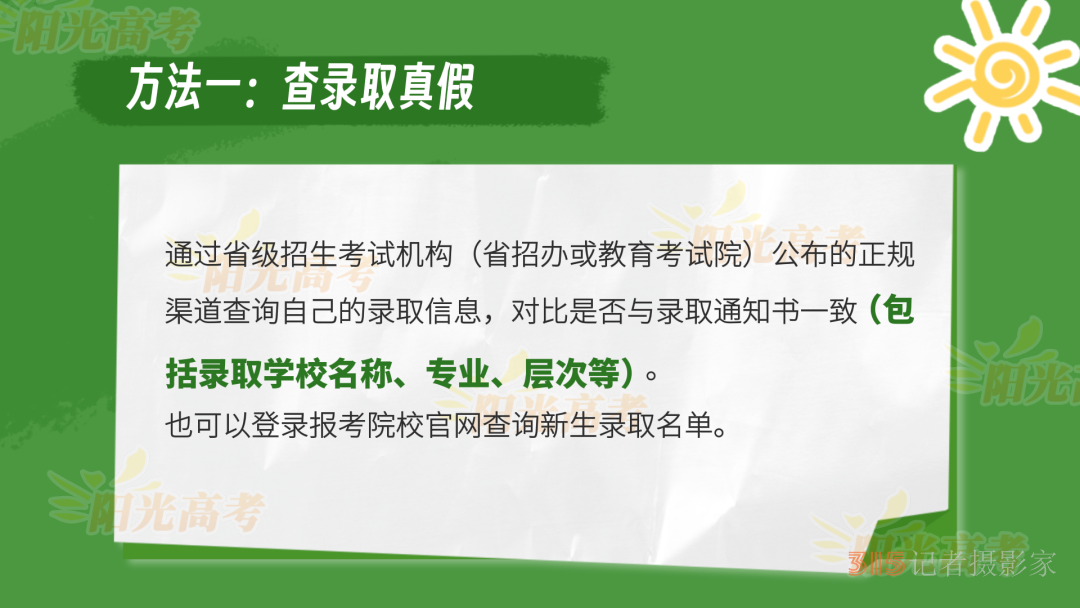 錄取通知書收到后,考生興奮之余,也要注意甄別通知書真假。這里教大家?guī)讉€方法: