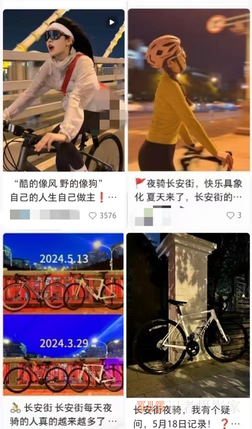 “夜騎長安街”成為騎行風尚。(圖片截自小紅書)