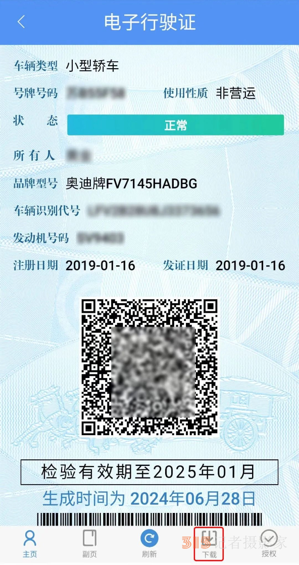 網(wǎng)上在線辦理業(yè)務需要提交行駛證的,用戶可選擇下載電子行駛證圖片。具體操作為:點擊電子行駛證下方【下載】按鈕,本人直接出示的填寫用途事項和有效期后下載,授權出示的直接下載。下載的電子行駛證加注使用人、用途事項和有效期限水印,有效期最長為7個工作日。