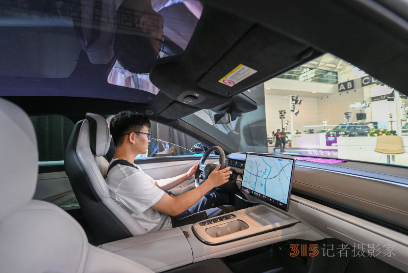 觀眾在2024世界智能產(chǎn)業(yè)博覽會(huì)現(xiàn)場(chǎng)靜態(tài)體驗(yàn)一款智能網(wǎng)聯(lián)電動(dòng)汽車(6月22日攝)。新華社記者 孫凡越 攝