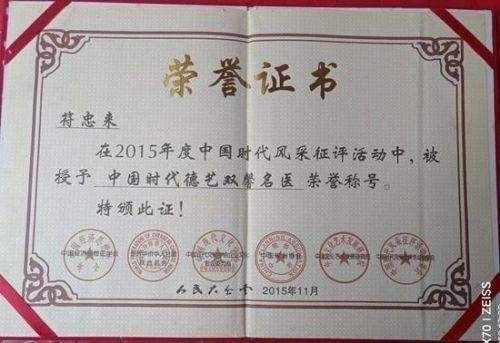 2013年10月25日,應(yīng)邀參加由“中國民間中醫(yī)藥研究開發(fā)協(xié)會”、“民間療法研究專業(yè)委員會”、“我國中醫(yī)藥秘方驗(yàn)方的發(fā)掘保護(hù)和轉(zhuǎn)化論壇組委會”聯(lián)合在北京舉辦的第二屆·中國夢、中國行”會議,被授于“濟(jì)世一方、助推中國夢”勛章一枚。