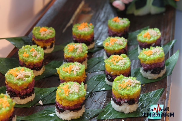 據(jù)了解,本次活動(dòng)共展出了66道安順特色佳肴。鹵香濃厚的醬鵝,酥軟鮮香的竹筒醬香肉,皮滑肉嫩的花江狗肉,酸辣可口的老東坡絲娃娃,外脆里嫩的布衣稻香排骨,色澤誘人的石頭布衣五彩飯……一道道色味俱佳的美食菜肴令人垂涎,現(xiàn)場(chǎng)賓客從中領(lǐng)略到了舌尖上的安順魅力。有嘉賓表示,他在安順菜肴里吃出了鄉(xiāng)愁,嘗到了回憶。安順美食不僅美在眼里,美在胃里,還美在了心里。
