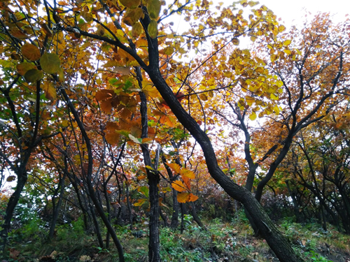 看這步道,這紅葉,如果不是陰天,能再有一縷陽(yáng)光那真是極好的!唱首歌吧:不下雨就出太陽(yáng)吧……即使沒有太陽(yáng)幫忙,我覺得我們拍到的也是很美的。金祖山的美在于發(fā)現(xiàn),每一次都能發(fā)現(xiàn)新的線路,新的景觀……單單是這天然氧吧新鮮的空氣已經(jīng)讓人陶醉了