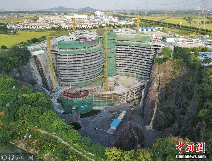 歷經(jīng)8年多建設(shè),在上海松江國(guó)家風(fēng)景區(qū)佘山腳下,一座深坑酒店近日進(jìn)入最后的裝飾裝修環(huán)節(jié)。這座投資6億元建造的酒店,位于一座深達(dá)80米的廢棄大坑內(nèi),這里曾經(jīng)是一座舊礦場(chǎng)。