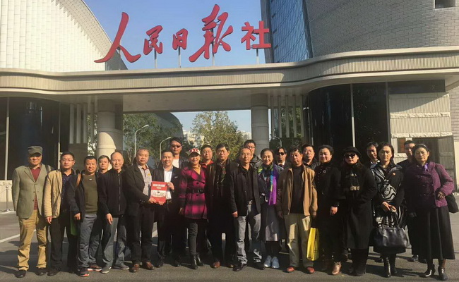 與會(huì)部分代表在人民日報(bào)社門前合影