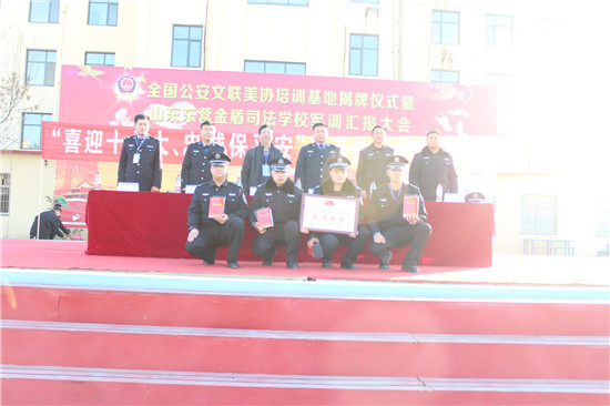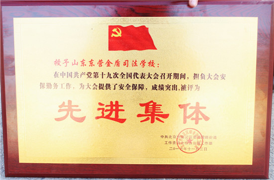 據了解,10月18日,在黨的第十九次全國代表大會在北京隆重開幕之際,全國公安文聯美協培訓基地、山東東營金盾司法學校受北京相關安保部門邀請,派出近300名學員赴京執勤。盛會期間,全體執勤學警恪盡職守、頑強拼搏,連續奮戰,攻堅克難,執勤過程中始終保持良好的軍姿警容,始終堅持依法執勤、文明執勤,為“山東東營金盾司法學校”迎回了中共北京市海淀區花園路街道工作委員會綜合治理工作部頒發的“先進集體”榮譽稱號。在全國公安文聯美協培訓基地、山東東營金盾司法學校的發展史上又增添了一抹亮色。