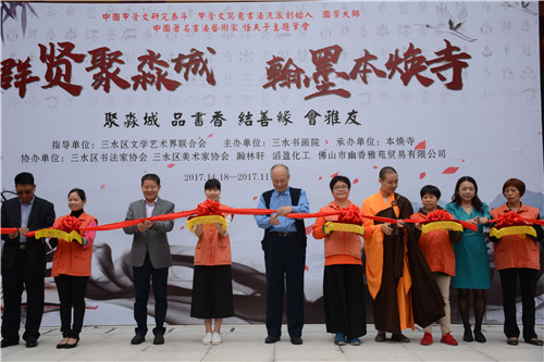 一線聚焦訊(宋陽)2017年11月18日,中國甲骨文研究泰斗、甲骨文寫意書法流派創(chuàng)始人、國學(xué)大師、中國著名書法藝術(shù)家怪夫子主題筆會(huì)在廣東省佛山市三水區(qū)森林公園本煥寺舉行。