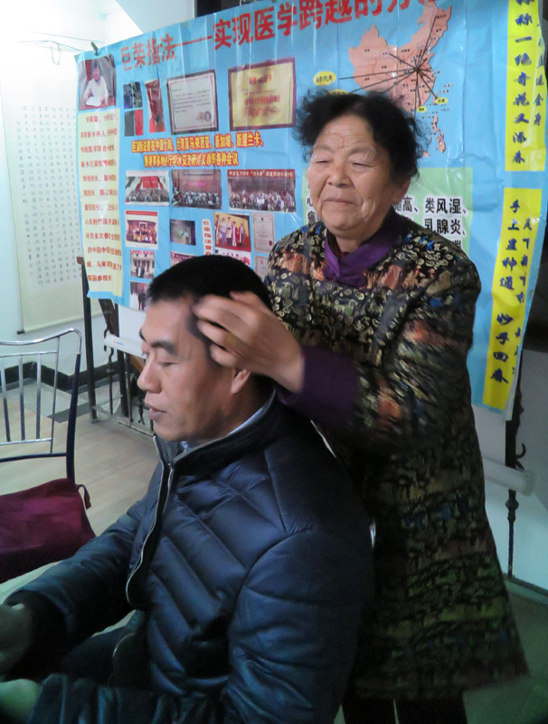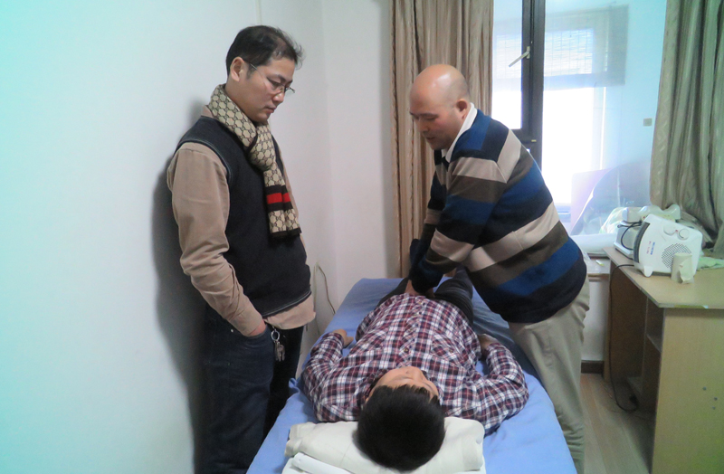紫丹派傳人靳國靈老師為陳浩主編做理療體驗