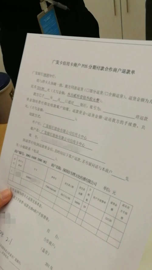 2月1號,韋博通知我去簽有關(guān)廣發(fā)銀行退款的協(xié)議單,讓我再等7到15個工作日。綜上,韋博對于退款一拖再拖,毫無信用可言。因質(zhì)疑15%的手續(xù)費是否為銀行收取,我向韋博追要銀行扣費憑證,工作人員均無法提供。